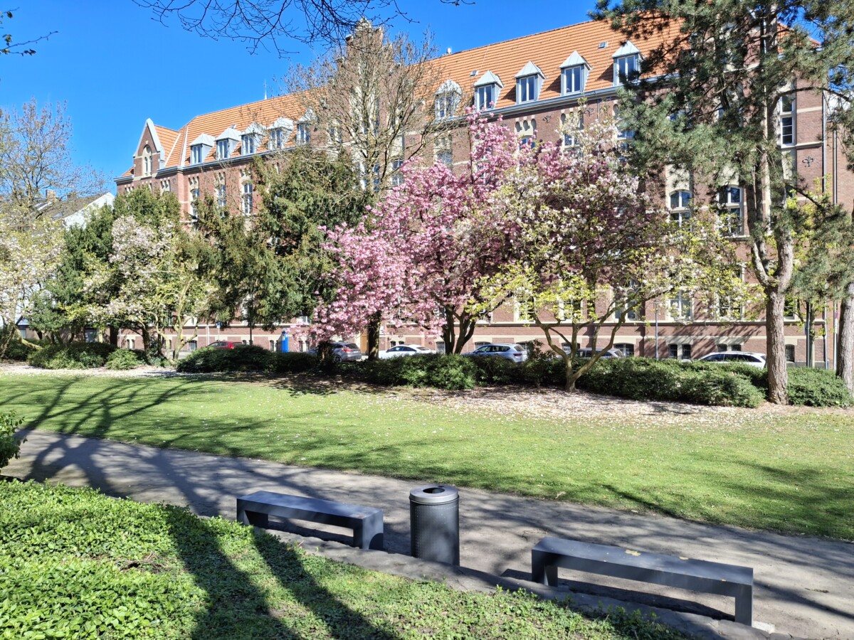 In een goede bui verder door bos en veld, buitenwijken en (ingepikte) dorpjes van Viersen (prettige nieuwbouwwijk) en Mönchengladbach, met een verrassend aardig fietspadennet! Op weg naar Kaarst en de Karster See werd dit minder, begonnen we ons te ergeren aan te drukke straten en verkeer. Even doorzetten tot aan de stadsrand van Neuss.