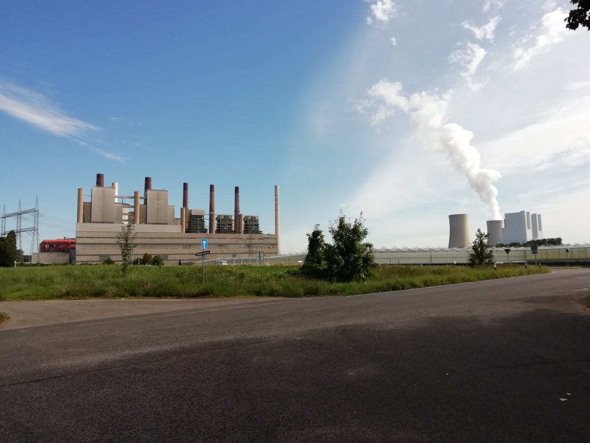 14 augustus: In alle rust ontbeten en dan weer een dagje fietsen door de omgeving voorbereid. We moesten nog heel wat aanvaarden om mee te nemen voor onderweg – alleen pralines ging te ver… – voor we uiteindelijk tegen 9.45 uur van Rotraud afscheid namen en uitgezwaaid werden. Via het ons beiden zo bekende stadje Dormagen over het spoor richting Tannenbusch, Delhoven, Delhoven-Blechhof, Knechtsteden, Ansteln, Rommerskirchen, Bedburg, langs de gigantische energiecentrale bij Frimmersdorf, Vanikum etc. Een extreem vreemde bruinkolenindustrie-omgeving.