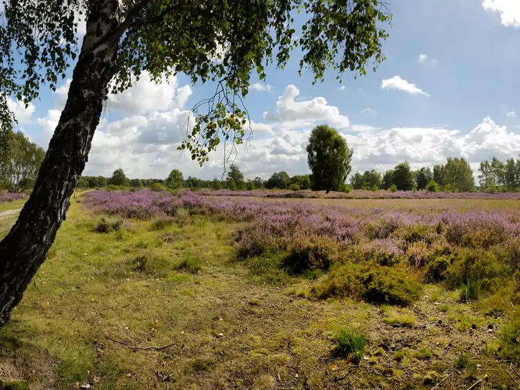 Na een uurtje rondstruinen fietsten we via de Zonser Heide (Hannepützheide) met de Joodse begraafplaats, mooie ´heuvelige´ bossen met een natuurspeelplaats, een kunstmatig grint- en zandwinningsmeer, de Martinsee, tot het maar 9 ha grote, beschermde natuurgebied de Wahler Berg.