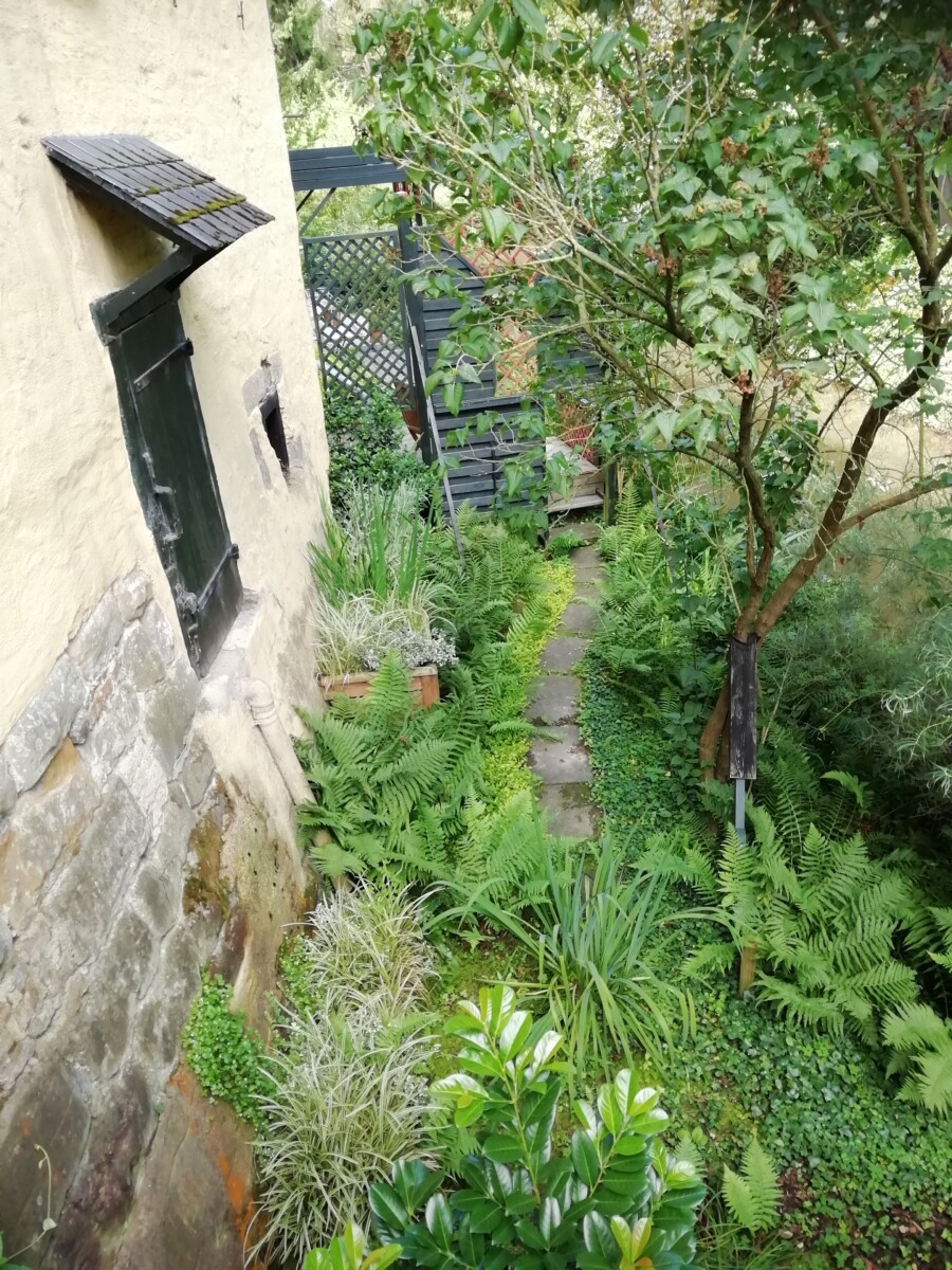 Tegen 17 uur bereikten we ons eerste slaapadres, Villa Kunterbunt met ruime kamers en vooral een prachtige subtropische binnenhof met een fijne tafel en stoelen. Hier hadden we gelijk zin om na een aperitiefje in een nabije supermarkt een maaltijd bijeen te kopen en buiten van de sfeer en het weer te genieten.
