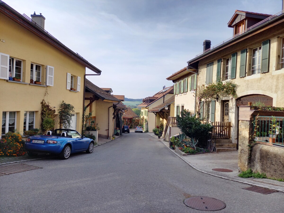 Zij woonden prachtig in dit heel rustige, Franstalige boerendorp, met uitzicht op een fraaie burcht – Vufflens-le-Château – die je na een wandeling door een smal, diep dal met bergbeek binnen 20 minuten kon bereiken. De hellingbossen onderweg kenden een weelderige, prachtige flora: nooit zoveel Stengelloze sleutelbloemen gezien, maar ook prachtige groeiplekken van Wilde narcissen, Gevlekt longkruid, sterhyacinten, Bosbingelkruid, Maartse viooltjes…