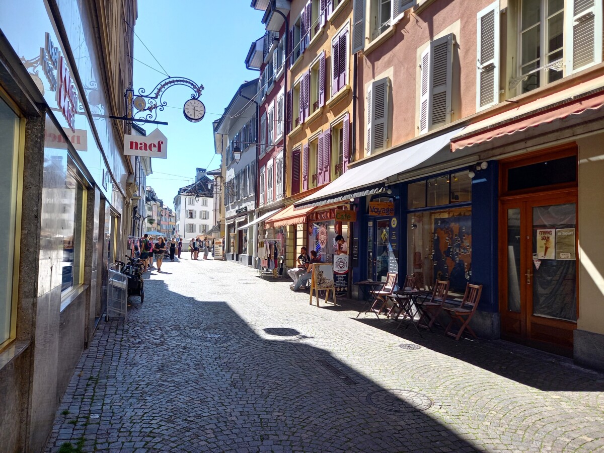 Tegen 15 uur daalden we af richting het centrum van oud-Sion, waar we op een niet meer zonnig, wel warm terras van koffie resp. biertjes genoten. Het begon al te schemeren toen we weer met trein en auto in St. Livres terugkeerden van een heerlijk dagje uit.