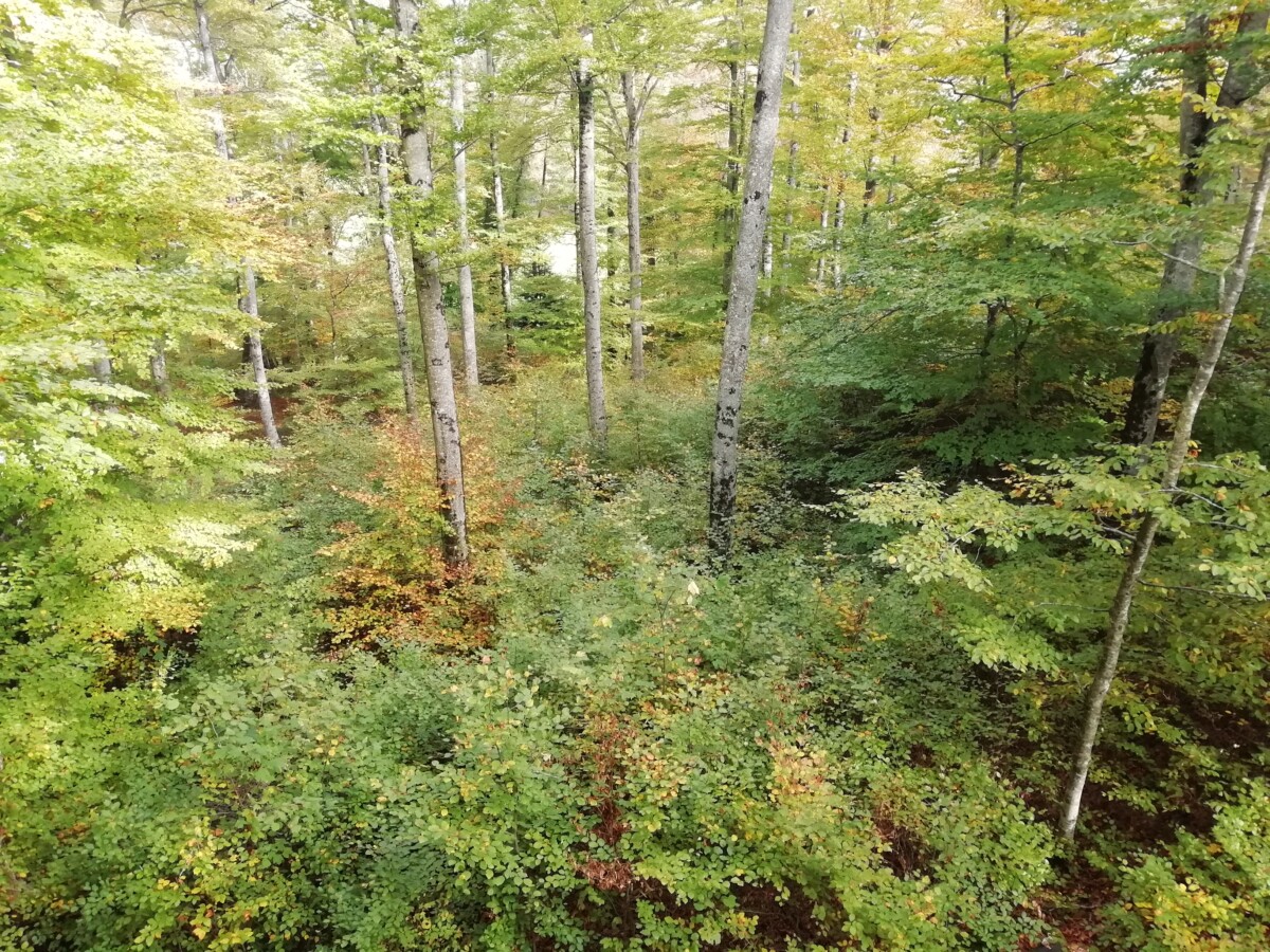Nooit zo iets gezien, waanzinnig mooi!!! Vandaar dan een pad, Sentier d’Eremite, gewandeld door een heerlijk, paddenstoelrijk en oud bos met spannende ondergroei en bomen, voor we weer, 800 m naar beneden, terugreden naar het