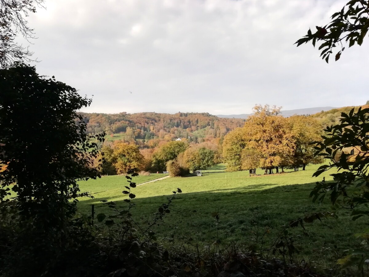 31 oktober: Weer zo´n zonnige, relatief warme dag! Na ontbijt en wat pak- en opruimbezigheden had Kirsten vandaag nog even tijd voor een mooie wandeling tussen 10 – 11.30 uur in haar directe woonomgeving: het dorp uit, langs een beekdal door het mooie bos tot het Arboretum Vallon de Aubonne en weer terug