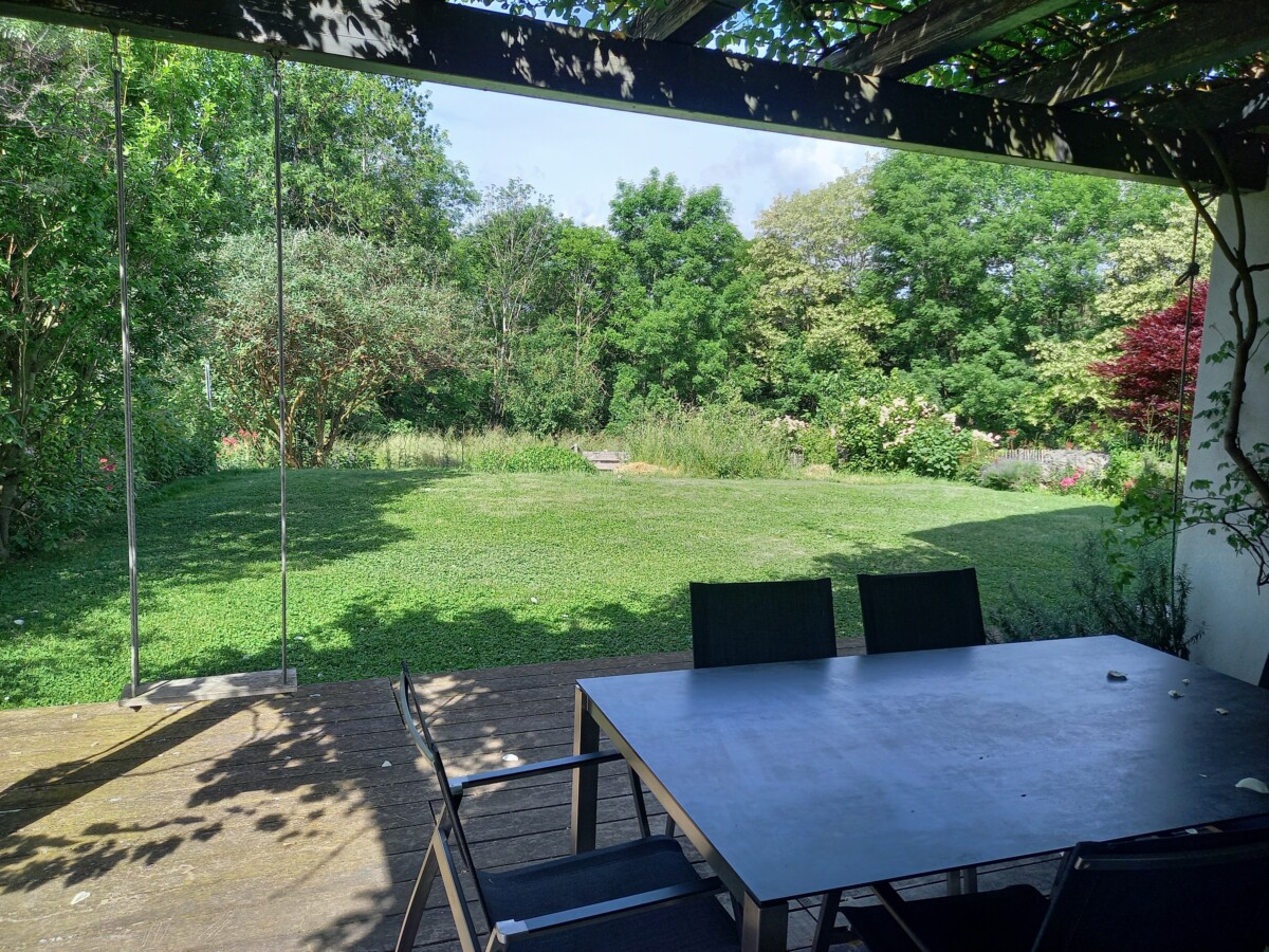 29 mei 2025: Onze derde lange reisdag met de trein. Van Paris-Gare de Lyon via Dijon, verder naar Lyon Part-Dieu reisden we in een trein met mooie grote ramen en regelmatig mooie berg-, bos- en veldpanorama’s. Na Lyon, richting Aix-les-Bains, werd de reis nog veel mooier. En ook hier hadden we het geluk van zitplekken met grote, schone ramen: veel verwondering over hoge bergtoppen, bossen en aan het eind een prachtig meer. En tot onze verbazing volgde dan nog zo’n mooie treinrit door de Alpen van Aix-les-Bains tot Genève. Vandaar tot Allaman aan het Meer van Genève was het dan nog een ruim half uurtje treinreis langs het meer. Daar wachtte (schoon-) zus Kirsten al op ons, en – als of ze het aanvoelde – koos ook zij een mooie, wat langere autoroute naar huis. En dat huis en de voor- en achtertuin groeien ook elke keer dat we, na jaren, weer eens komen kijken fraaier samen met de omgeving.