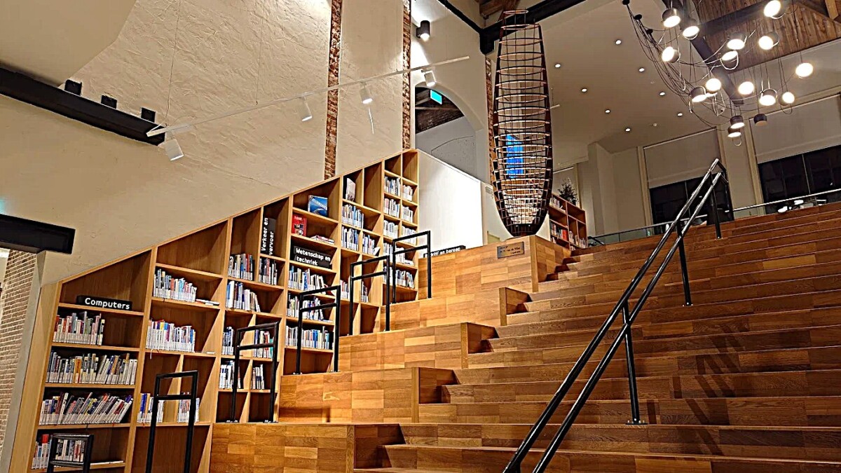 Als we even nog wat tijd hebben voordat de boot naar Texel vertrekt zijn we graag voor een drankje en een hapje in de voormalige School 7, die zich nu een van de aantrekkelijkste openbare bibliotheken ter wereld mag noemen. Mooi meegenomen: met onze Texelse bibliotheekpas kunnen we ook boeken uitlenen in Den Helder.