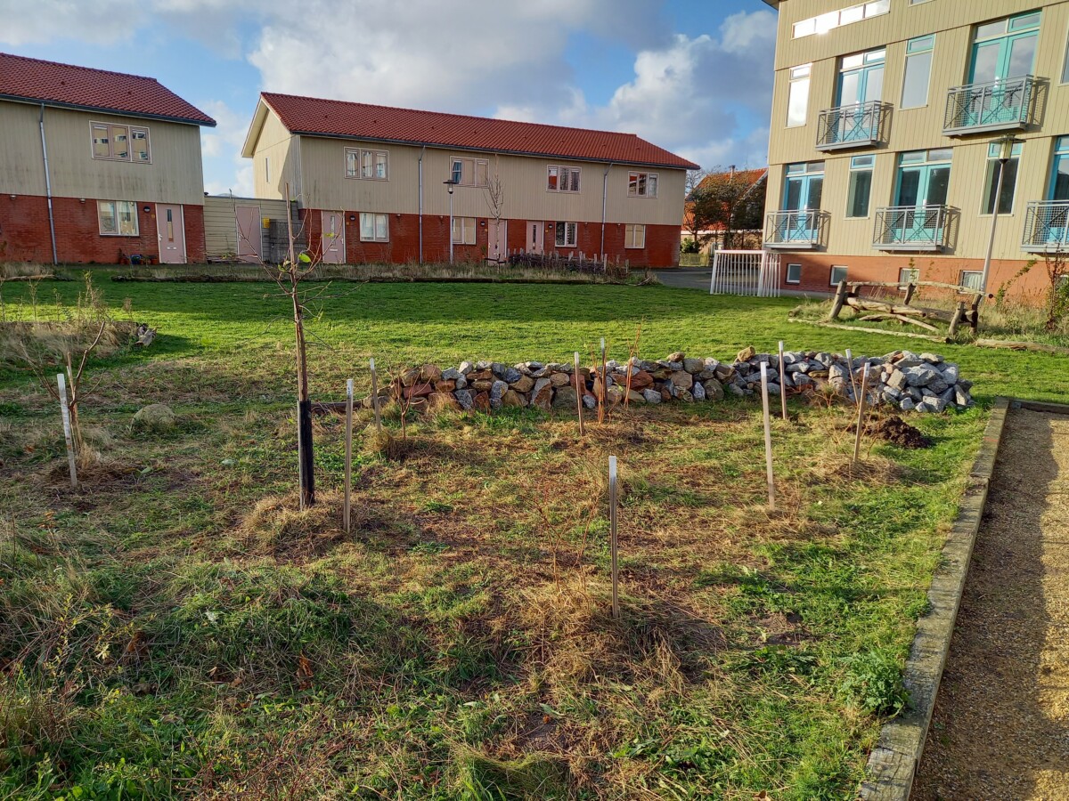 In november hebben we fruitbomen en -struiken gekocht en geplant (1 pruim, 1 appel, 2 kersen, 3 honingbessen, 2 frambozen, 1 aalbes en 2 zwarte bessen. Dat was nog de laatste activiteit in het kader van het project ‘klimaat en weerbestendiger maken van de Potvistuin’, waarvoor we begin dit jaar van het Texelfonds subsidie hadden gekregen.