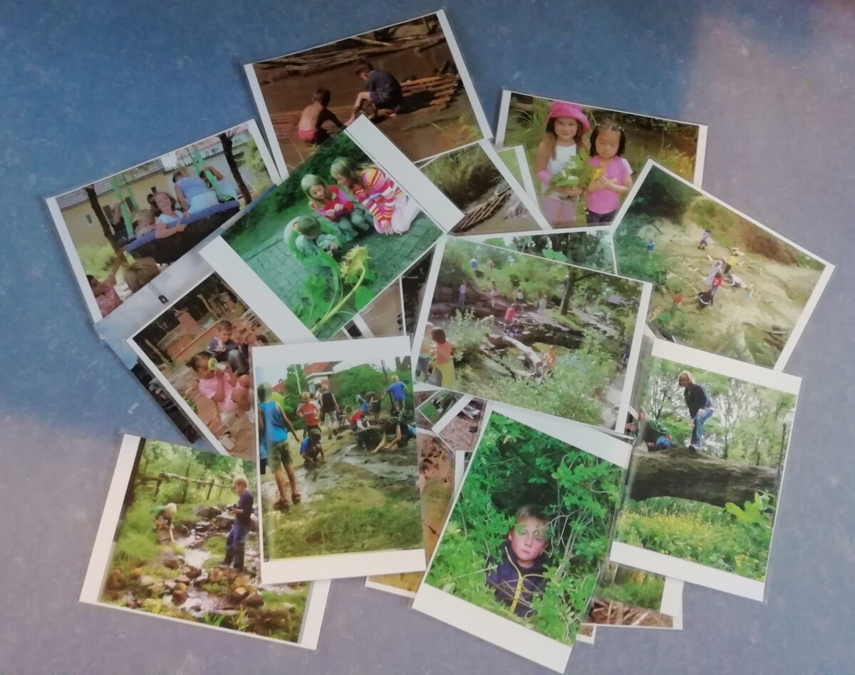 Pjotr had al gauw, na een duik in ons fotoarchief, een stapel van 50 treffende, gelamineerde foto’s (A-4) uit de speelnatuurwereld ontwikkeld. Velen in de groeiende Springzaadkring – waaronder wij zelf – werkten tijdens workshops e.a. inspirerende bijeenkomsten met dit boeiende materiaal. Ook bij volwassenen riepen de afbeeldingen emotionele, nostalgische gevoelens op! Het zijn ook de vroege voorlopers van de onvolprezen 30 Springzaad-collages waar Pjotr later de kleine, sprekende tekstjes voor verzorgde. Uiteraard gebruikte Pjotr de plaatjes ook voor zijn eigen PABO-werk, met studenten, stagiaires en leerkrachten.